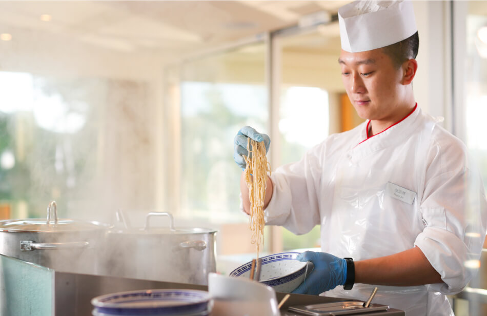 想在早晨来一碗热乎乎的鸡汤面,或者在深夜吃一碗喷香诱人的酸辣粉?位于观景廊的面吧每天从清晨6点起开放18小时,为您提供招牌担担面和每日轮换的一款现煮中式面条,满足您思乡的胃。坐在户外吃着担担面,眼前的沿河欧洲美景、嘴里的熟悉香辣味道,定会留下难忘的回忆。这里也将提供具有古早味的中华点心与小食,给您带来额外的惊喜。